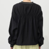 後ろ身頃にほどこされたギャザーは均等に入れたステッチワークで表現された、細部までこだわりを感じさせるつくり。