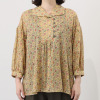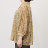 後ろ襟ぐりや袖山、袖口にほどこしたギャザーが、軽やかな躍動感をプラス。
