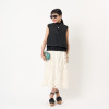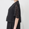 ややハリのある生地の周りに、シアー感のある刺しゅう生地をレイヤード風に配して軽やかな印象に仕上げました。