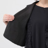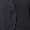 大きく開いた前合わせで、ボリュームのあるラッフルやリボンボウタイ付きのシャツなどとマッチします。