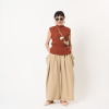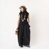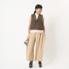 スカートのようなたっぷりとした分量感でありながら、ウエスト周りはタックを用いてすっきりと見せる工夫をほどこしました。