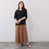 ウエストを総ゴム仕様にした窮屈に感じにくいつくりながら、エレガントに見える質感にこだわって仕上げました。