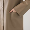 最近の温暖化で12月に着るものが無く 思案してました。ダウンだと早いし カシミヤだと かしこまりすぎるし。ラムレザーは軽くて 色も明るいので 合わせやすい まず3Lがあった 昨年ベスト2L頂きましたが 私はバストが大きいので 閉まらなかった 3L見つけて 即買いました。ありがとう。他のジャケットも欲しかったけど 襟周りが丸すぎて 太っている私には 詰まってきにくいので 諦めました。襟周りのパターンを考えてください。このコートは大丈夫ですやや立ち上がりがあるので 倒せもしますから。