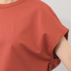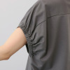 アームホールの後ろ身頃側にゴムをあしらうことでツッパリ感を軽減し、細かいギャザーアクセントで華奢な印象かつ、ふんわり感を演出しました。