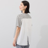 ボーダー柄と無地という絶妙な配色バランスで、着るだけでコーディネイトが完成するおしゃれ感を演出。