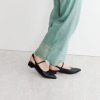 足を美しく見せるシャープなフォルムと歩きやすさを両立。甲を押さえるベルトが足をホールドします。