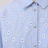 ストライプ生地をベースに、前身頃には繊細な花の刺しゅうをほどこし、大人のかわいらしさを表現。
