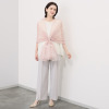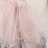 涼やかに、軽やかに、おしゃれを楽しんでいただけます♪両裾には同色のチュールとシルバービーズ&パールモティーフスタッズを手作業であしらい、ふんわりとした適度なボリューム感とエレガントさを演出。