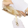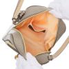 前面下部は、ブランドロゴをエンボス加工した当ブランドオリジナルのリベットをあしらい、さりげない華やかさを演出。