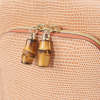 前面ポケットのファスナー引き手は、ナチュラルバンブーを採用した、清涼感のあるデザイン。