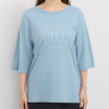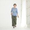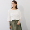 ドロップさせた肩線に、長めに設定した半袖が特徴的。