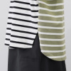 前後でボーダーの配色を変えた遊び心あふれるデザイン。肌になじむコットンスムースで着心地も◎