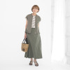 首回りをスッキリと見せてくれるボートネック風のネックラインが首元をすっきりと演出。