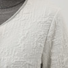 キルトジャガードで編み立てた立体的な幾何学模様が特徴のジャケットです。