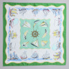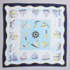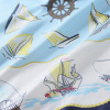 優雅な帆船が揺れ並ぶイメージを、繊細なタッチとカラーで描いたシルク100%のスカーフです。