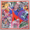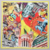 リヨンの風景コラージュを大胆なモティーフ使いでエネルギッシュに表現したシルク100%のスカーフです。