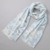 触った瞬間、ひんやりしました。長さも幅もあるので、色々アレンジ出来そうです。色はブルー系で、白、ネイビーなどシンプルな服にピッタリです。シワにならない所も良かったです。