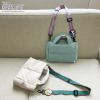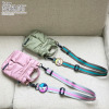 ストラップを装着できる金具付きのバッグであれば取り付けが可能で、シンプルなデザインのバッグでも一気にキュートな印象に変わります。