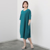 グリーンの色が鮮やかで綺麗だし、ストーンと着るだけで楽だし体のラインも拾わない。