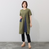 すとんと裾に向かって落ちる控えめなAラインシルエットで身体のラインを拾いにくく、チュニック丈がヒップ周りをカモフラージュ。