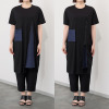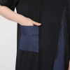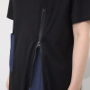胸下から裾にかけてファスナーをあしらったデザインで、開けると内側のデニムカラーの異素材がのぞき、さりげないアクセントに。