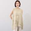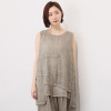毎年この麻のシリーズを楽しみにいただいています。昨年買えなかったタンクトップを手に入れてうれしいです。昨年より凝ったデザインということで(?)満足感もあります。以前いただいた羽織ものやパンツと組み合わせて着るのが楽しみです。