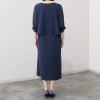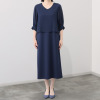 ダブルジャージーのタンクトップワンピースの上に、強撚加工をほどこしたオーバーサイズのシフォンジョーゼットブラウスを重ねたデザイン。