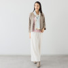 柔らかなシルクを100%用いた、ふわとろタッチの肌触り。こだわりのデザインがお顔周りを明るく彩る。