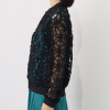 テープヤーンで表現された美しいフラワー柄が特徴のシアー感のあるジップブルゾンです。