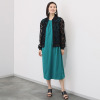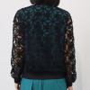 襟元、袖口、裾には同系色のリブ素材を用い、ふわっとした印象のレース素材をきりっと引き締めています。