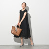 贅沢な生地分量を使ったフレアーシルエットは開放的で涼しげな印象を与えます。