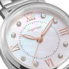 文字盤の天然シェルが光の当たり方によって七色に輝き、さまざまな表情を楽しめます。