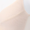 カップ生地部分は、ポリエステルを用いたダブルラッセル素材で、目の粗いメッシュ素材のため、軽やかで風通しの良いつくり。