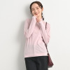 本体は、シルクをブレンドした当ブランドオリジナルの混紡糸を用い、ハイゲージ(14ゲージ)の天竺編みで仕立てたました。