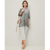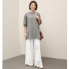 シャリ感があり、サラッとした爽やかな肌当たりの暑い季節に適した素材で、厚すぎず、薄すぎない肉感のため、身体のラインを拾いにくく、透けにくい点が魅力。