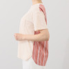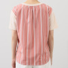 後ろ身頃をハリ感のある大胆なストライプ生地で切り替え、首元にギャザーをほどこすことで、適度に緩みのあるシルエットに仕立て、清涼感を表現しました。