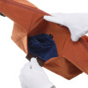 フロントポケットのツマミには当ブランドの刻印、下部にブランドモティーフの刺しゅうをさりげなくあしらい、細部までこだわりを散りばめました。
