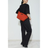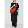 三日月形のシルエットがトレンド感を演出し、ボディから立ち上がる太めのショルダーベルトがデザインアクセントに。