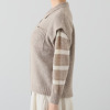 梳毛のような上品な艶とシャープさを持ちながら、紡毛(ぼうもう)ならではの膨らみと暖かみも兼ね備えた糸で、しなやかで軽く、それでいて包み込むような温もりを感じられます。