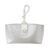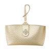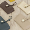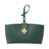 美しいガラスビジュウのクローバーモティーフがほどこされており、バッグチャームとしても華やかさを添えてくれます。