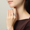 複雑な透かし模様から生まれるやさしい光が印象的で、バランス良く留めたCZがクリアーで強い煌めき放ち、お手元に一層の華やぎをプラス。
