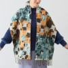 千鳥格子の水彩画による表現というコンセプトでデザインされた模様は、巻き方によりさまざまな表情を見せ、リバーシブルアイテムのようにも楽しめます。