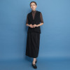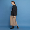 斜めタックが生み出す立体的なシルエットで、美しいIラインを演出。気になる下半身をエレガントにカバー。