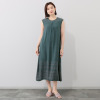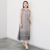肩と裾に配置された2配色の幾何柄が、主張しすぎず上品な印象を演出します。