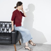 すっきりとした五分袖の袖口には、リブを緩めにつけることで、着やすさと細見え効果を狙いました。