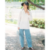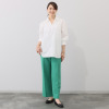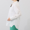 シャツ襟の角を丸く仕上げ、後ろ襟ぐりのみ台襟を付けた、大人のかわいさプラス格好良いデザインです。