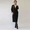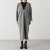 深いV字ネックがお顔周りをすっきりと見せ、前後中心にほどこされた切り替えステッチが縦のラインを強調し、スタイルアップ効果が期待できます。