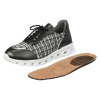 波形模様のカップインソールが前滑りを軽減し、アーチクッションで足裏をしっかり支えます。
