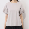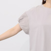 首周りがすっきりとしたデザインで、袖口には細い丸ゴムを通してランダムに寄せたギャザーがアクセントに。