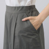 ウエスト部分は平ゴムを芯地替わりにしてすっきり見せ、後ろはギャザーを寄せてきちんと感とはき心地の良さを両立させた設計。